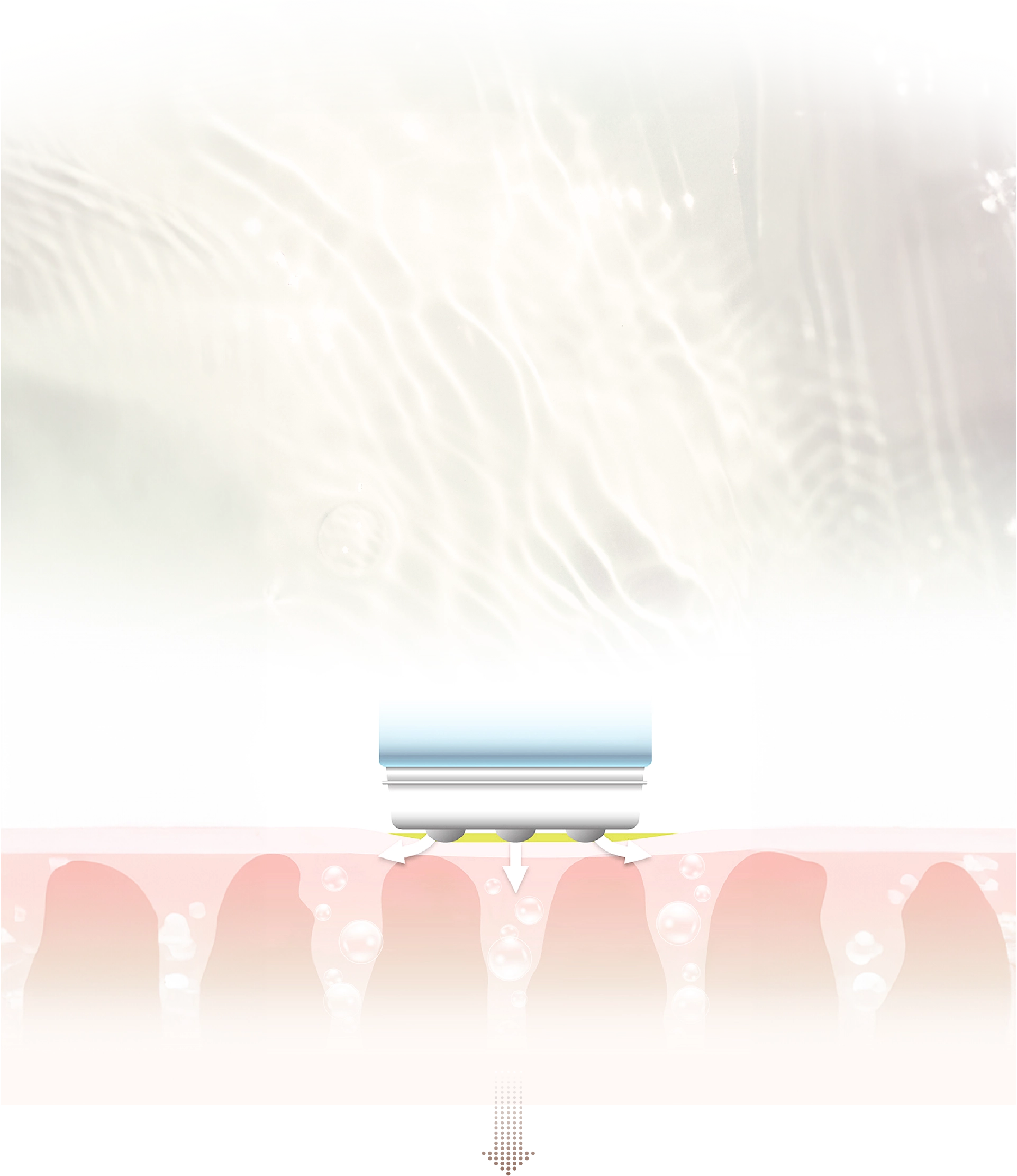 DEP®利用獨有「無創電子皮膚穿透技術」,以低脈衝電流刺激細胞膜產生物理反應,皮膚於2秒間打開無數微孔,短暫擴大17倍導入能力,產生水通道蛋白並構成細胞水基通道,允許各類型大小分子精華進入皮膚底層,免卻針筒注射,無創無痛地做到媲美醫美注射的效果。